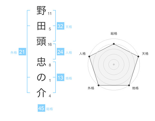 野田頭 忠の介さんを姓名の画数から五運を鑑定