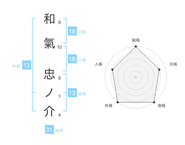 和氣 忠ノ介さんの総格は31画の5点!