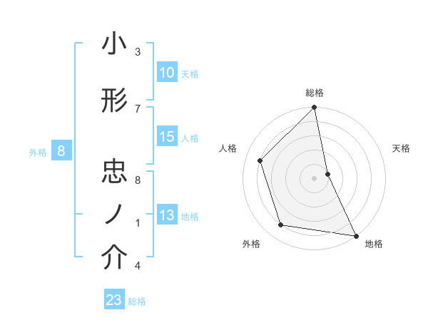 小形 忠ノ介さんを姓名の画数から五運を鑑定