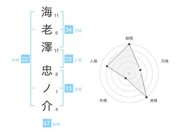 海老澤 忠ノ介さんの総格は47画の5点!