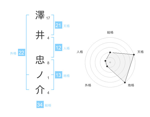 澤井 忠ノ介さんを姓名の画数から五運を鑑定