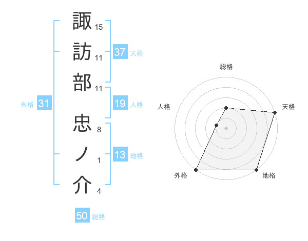 諏訪部 忠ノ介さんの総格は50画の2点!