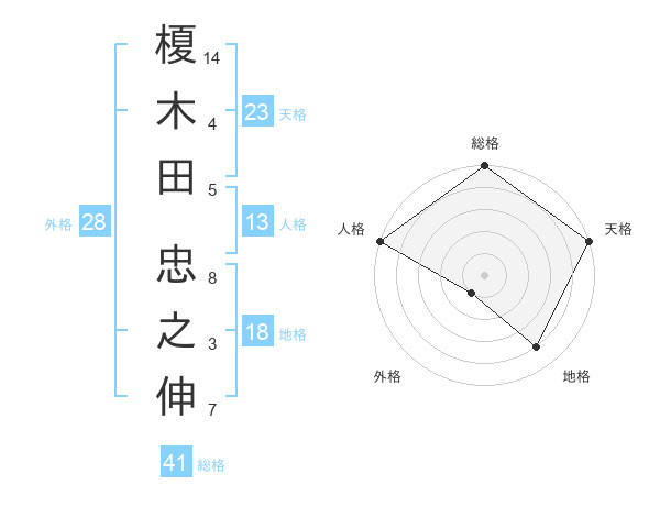 榎木田 忠之伸さんの総格は41画の5点
