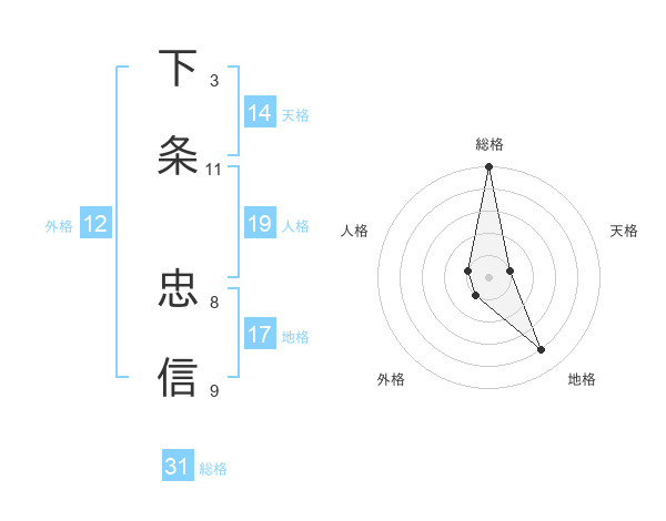 下条 忠信さんの総格は31画の5点!