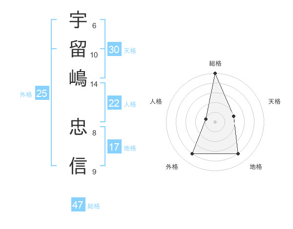 宇留嶋 忠信さんの総格は47画の5点