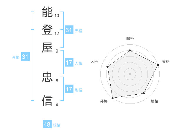 能登屋 忠信さんを姓名の画数から五運を鑑定