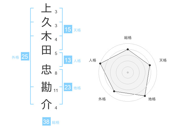 上久木田 忠勘介さんを姓名の画数から五運を鑑定