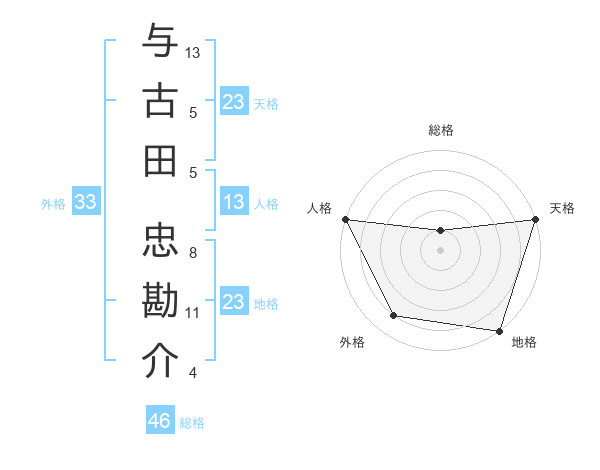 与古田 忠勘介さんを姓名の画数から五運を鑑定