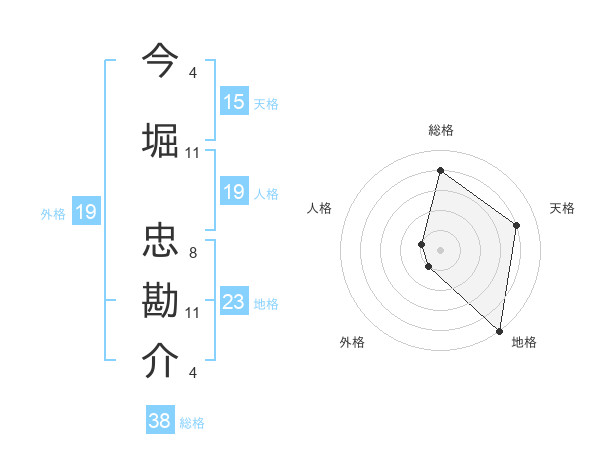 今堀 忠勘介さんを姓名の画数から五運を鑑定