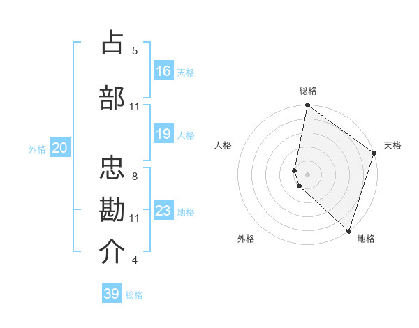 占部 忠勘介さんを姓名の画数から五運を鑑定