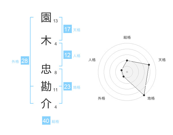 園木 忠勘介さんを姓名の画数から五運を鑑定
