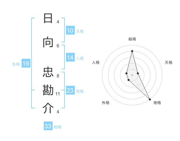 日向 忠勘介さんを姓名の画数から五運を鑑定