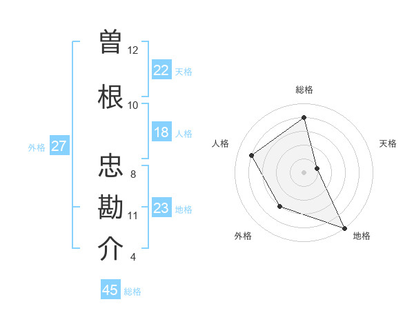 曽根 忠勘介さんを姓名の画数から五運を鑑定