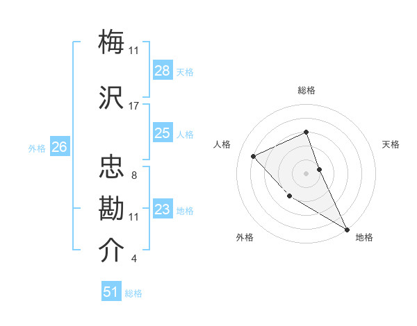 梅沢 忠勘介さんを姓名の画数から五運を鑑定