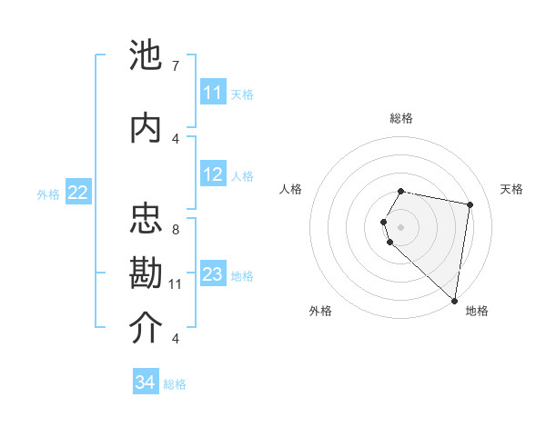 池内 忠勘介さんを姓名の画数から五運を鑑定