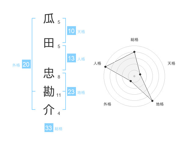 瓜田 忠勘介さんの総格は33画の4点!