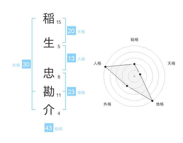 稲生 忠勘介さんを姓名の画数から五運を鑑定