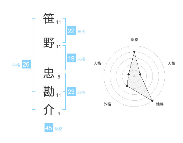 笹野 忠勘介さんを姓名の画数から五運を鑑定
