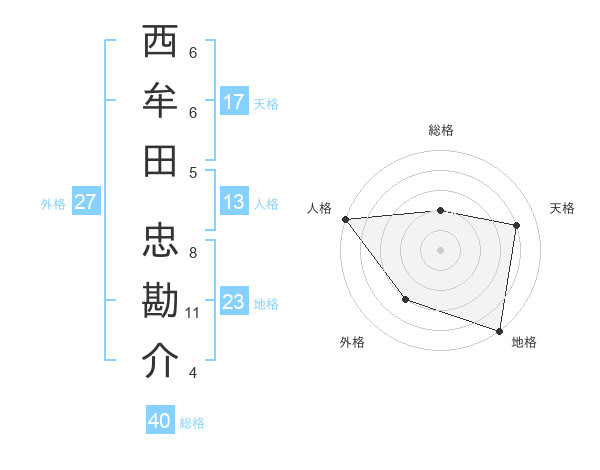 西牟田 忠勘介さんを姓名の画数から五運を鑑定