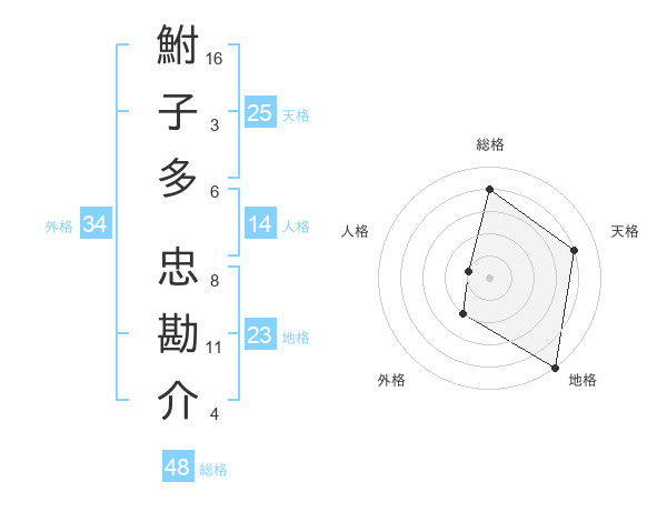 鮒子多 忠勘介さんを姓名の画数から五運を鑑定