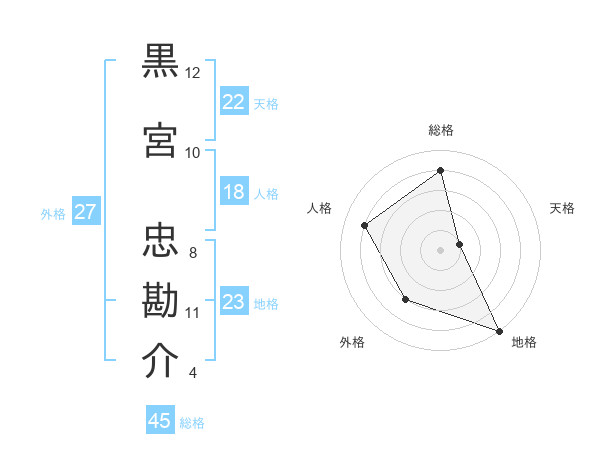 黒宮 忠勘介さんを姓名の画数から五運を鑑定