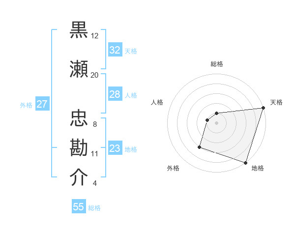 黒瀬 忠勘介さんを姓名の画数から五運を鑑定