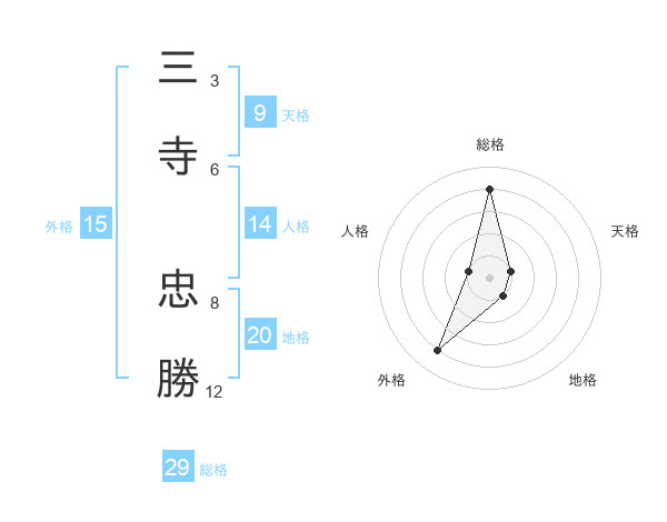 三寺 忠勝さんの総格は29画の4点!