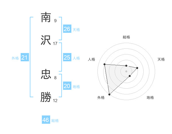 南沢 忠勝さんを姓名の画数から五運を鑑定