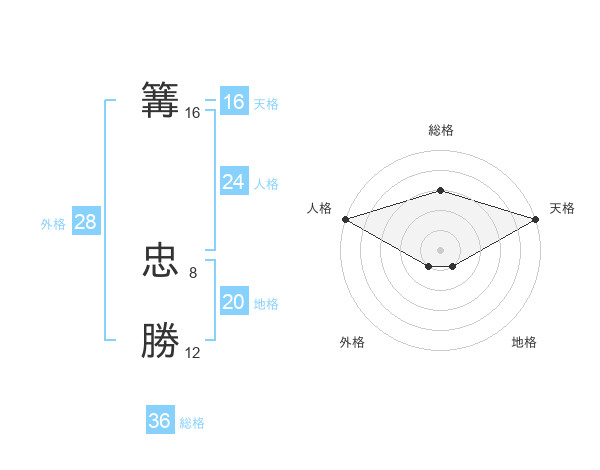 篝 忠勝さんを姓名の画数から五運を鑑定