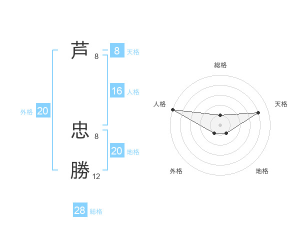 芦 忠勝さんを姓名の画数から五運を鑑定