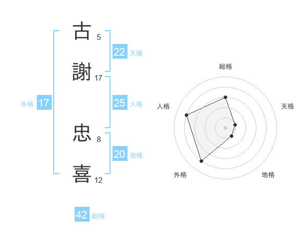 古謝 忠喜さんの外格は17画の4点!