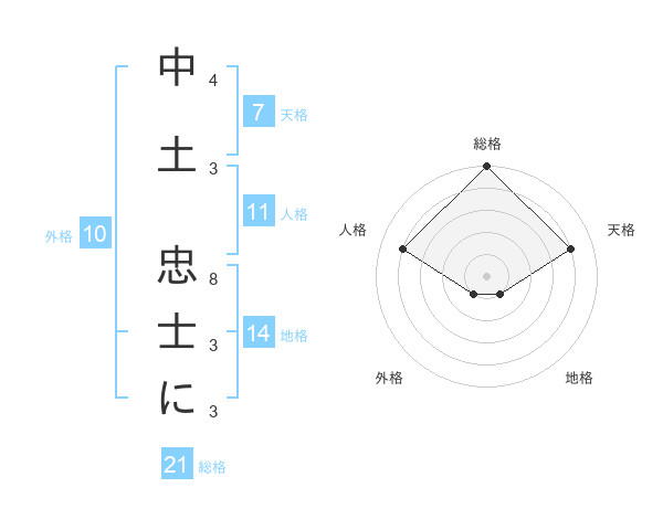 中土 忠士にさんを姓名の画数から五運を鑑定