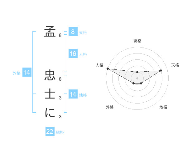 孟 忠士にさんを姓名の画数から五運を鑑定