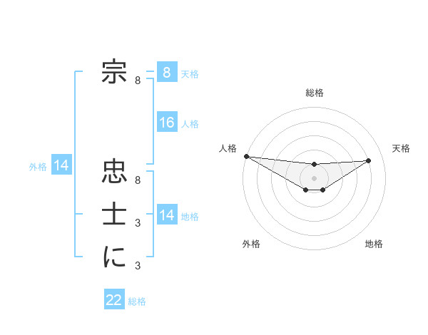 宗 忠士にさんを姓名の画数から五運を鑑定