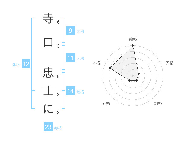 寺口 忠士にさんの総格は23画の5点