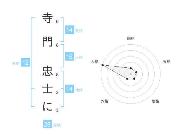 寺門 忠士にさんの天格は14画の1点!