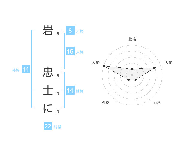 岩 忠士にさんを姓名の画数から五運を鑑定
