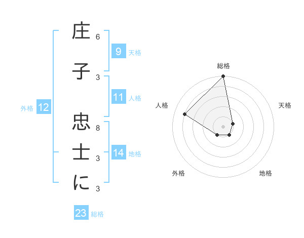 庄子 忠士にさんの総格は23画の5点!
