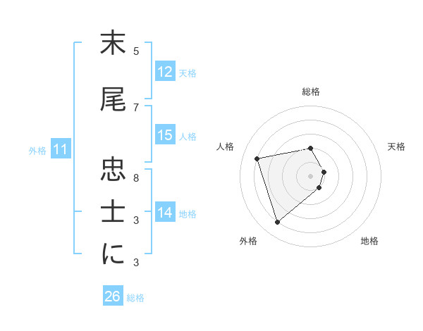 末尾 忠士にさんを姓名の画数から五運を鑑定