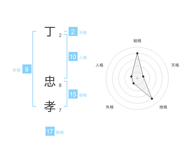丁 忠孝さんの総格は17画の4点!