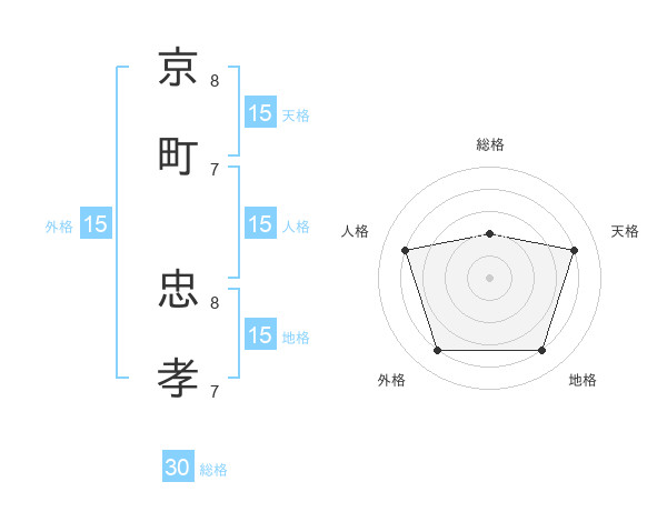 京町 忠孝さんの天格は15画の4点!