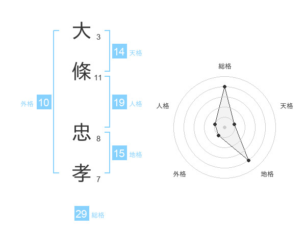 大條 忠孝さんを姓名の画数から五運を鑑定