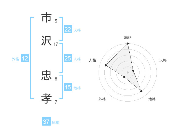 市沢 忠孝さんの総格は37画の5点!