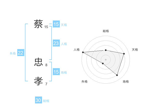 蔡 忠孝さんの総格は30画の2点!