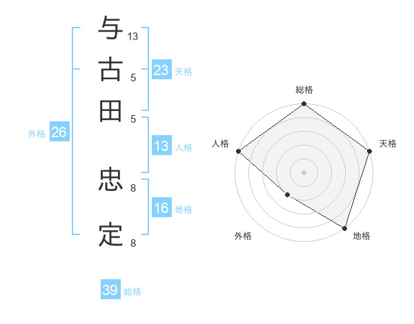 与古田 忠定さんを姓名の画数から五運を鑑定