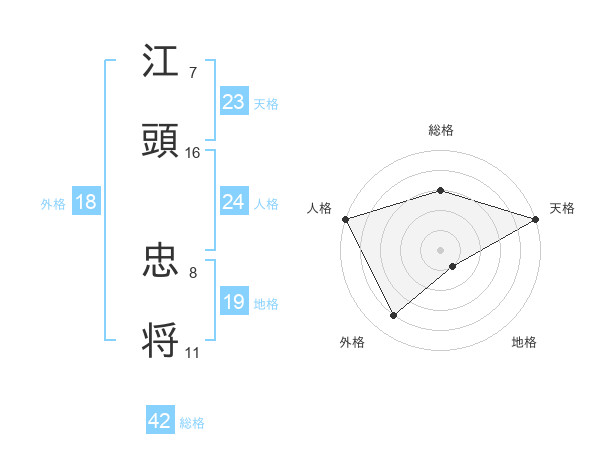 江頭 忠将さんを姓名の画数から五運を鑑定