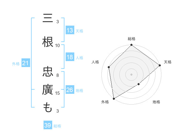 三根 忠廣もさんの外格は21画の5点!