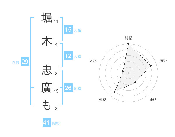 堀木 忠廣もさんの天格は15画の4点!