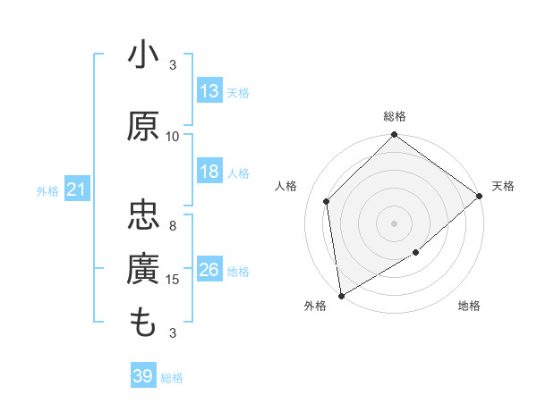 小原 忠廣もさんを姓名の画数から五運を鑑定