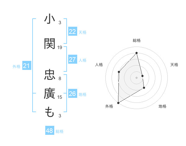 小関 忠廣もさんの総格は48画の4点!